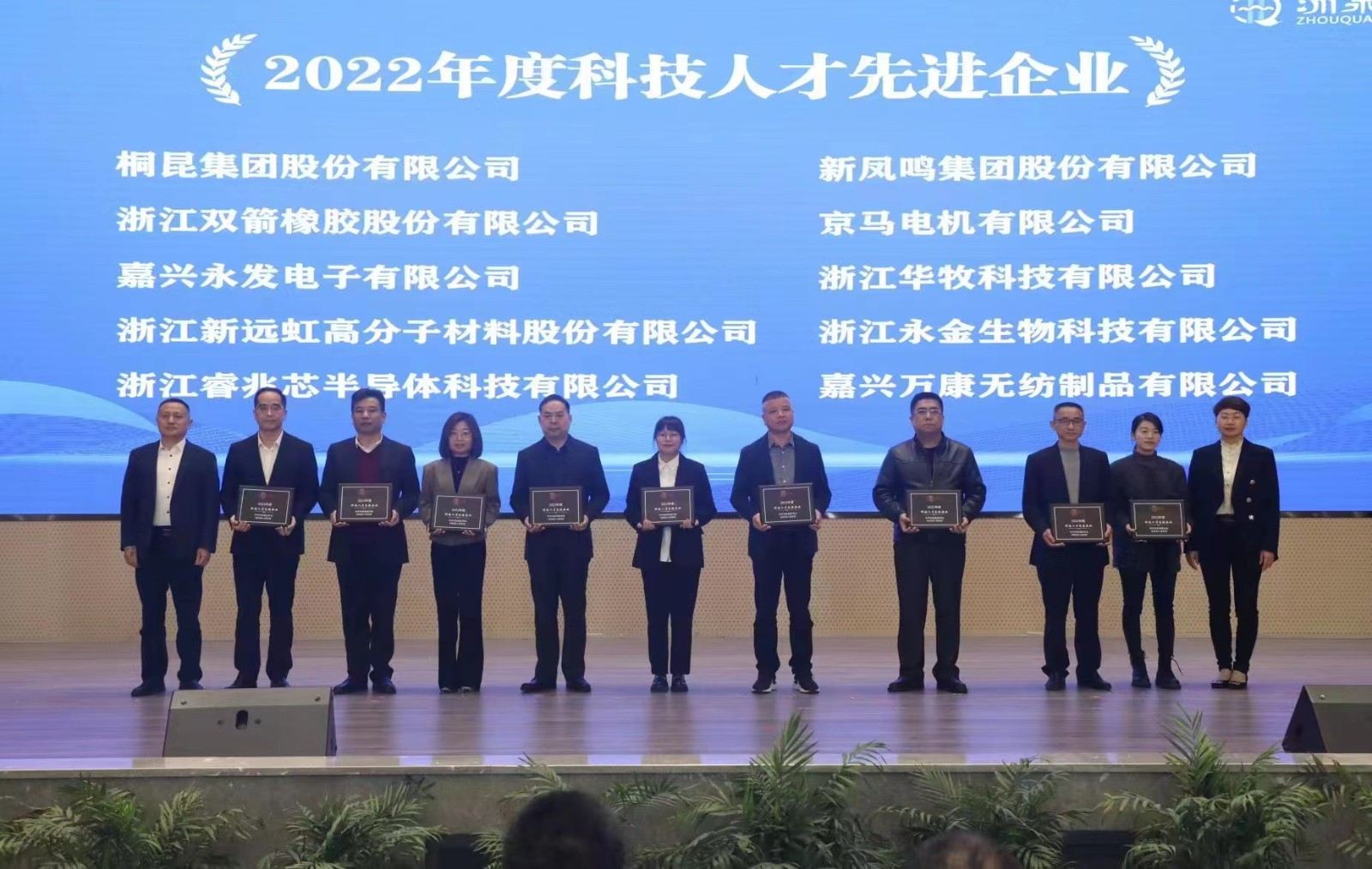 洲泉鎮2022年度經濟工作,雙箭股份榮獲《2022年度突出貢獻企業》、《2022年度科技人才先進企業》,副董事長沈凱菲榮獲《2022年度優秀青年企業家》,授于雙箭股份《親清新型政商關系監測點》。