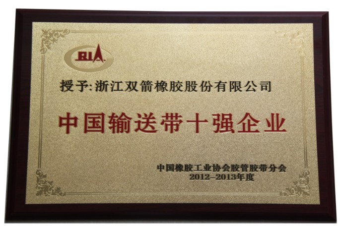 雙箭再次被授予為“中國輸送帶十強企業(yè)”